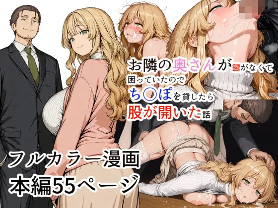 【2025-06-13】に発売した、同人サークル【白い惑星】の人妻エロコレクションです。【お隣の奥さんが鍵がなくて困っていたのでち○ぽを貸したら股が開いた話】55ページ全てネタバレします。