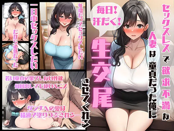 【2025-07-16】に発売した、同人サークル【ちねるちねる】の人妻エロコレクションです。【セックスレスで欲求不満の隣の人妻(37)は童貞だった俺に毎日汗だく生交尾させてくれる】62ページ全てネタバレします。